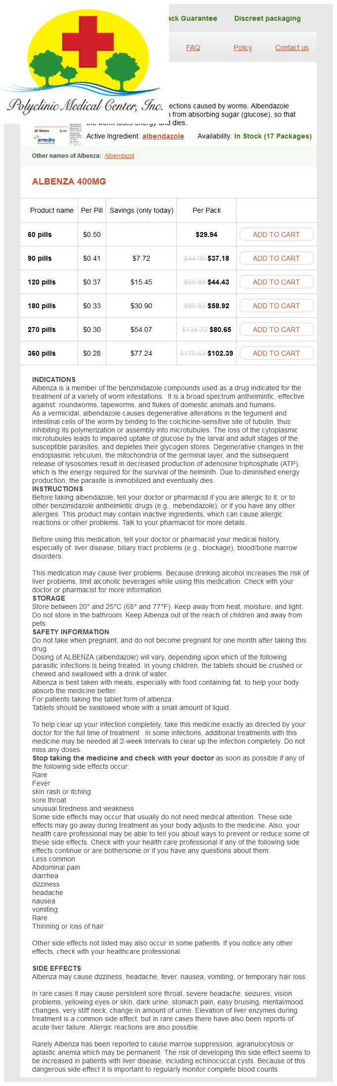 Albenza packs: 60 pills, 90 pills, 120 pills, 180 pills, 270 pills, 360 pills