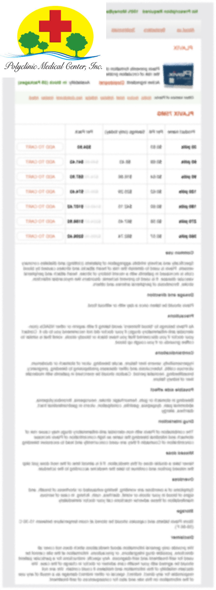 Plavix packs: 30 pills, 60 pills, 90 pills, 120 pills, 180 pills, 270 pills, 360 pills