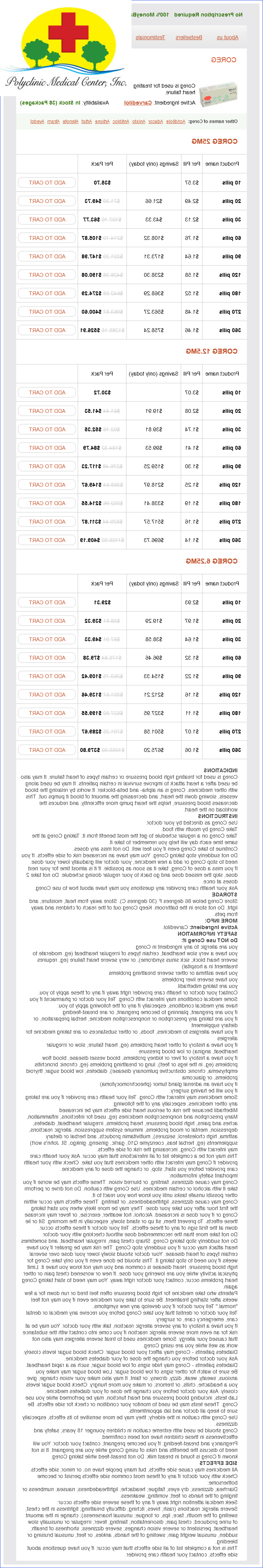 Coreg packs: 10 pills, 20 pills, 30 pills, 60 pills, 90 pills, 120 pills, 180 pills, 270 pills, 360 pills