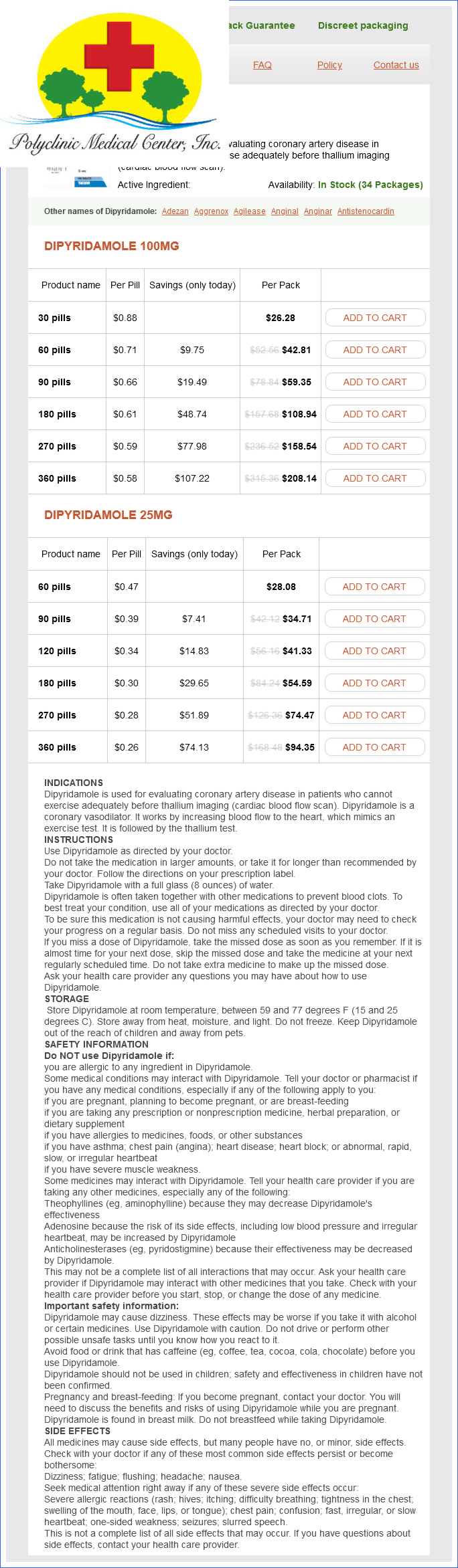 Dipyridamole packs: 30 pills, 60 pills, 90 pills, 180 pills, 270 pills, 360 pills, 120 pills